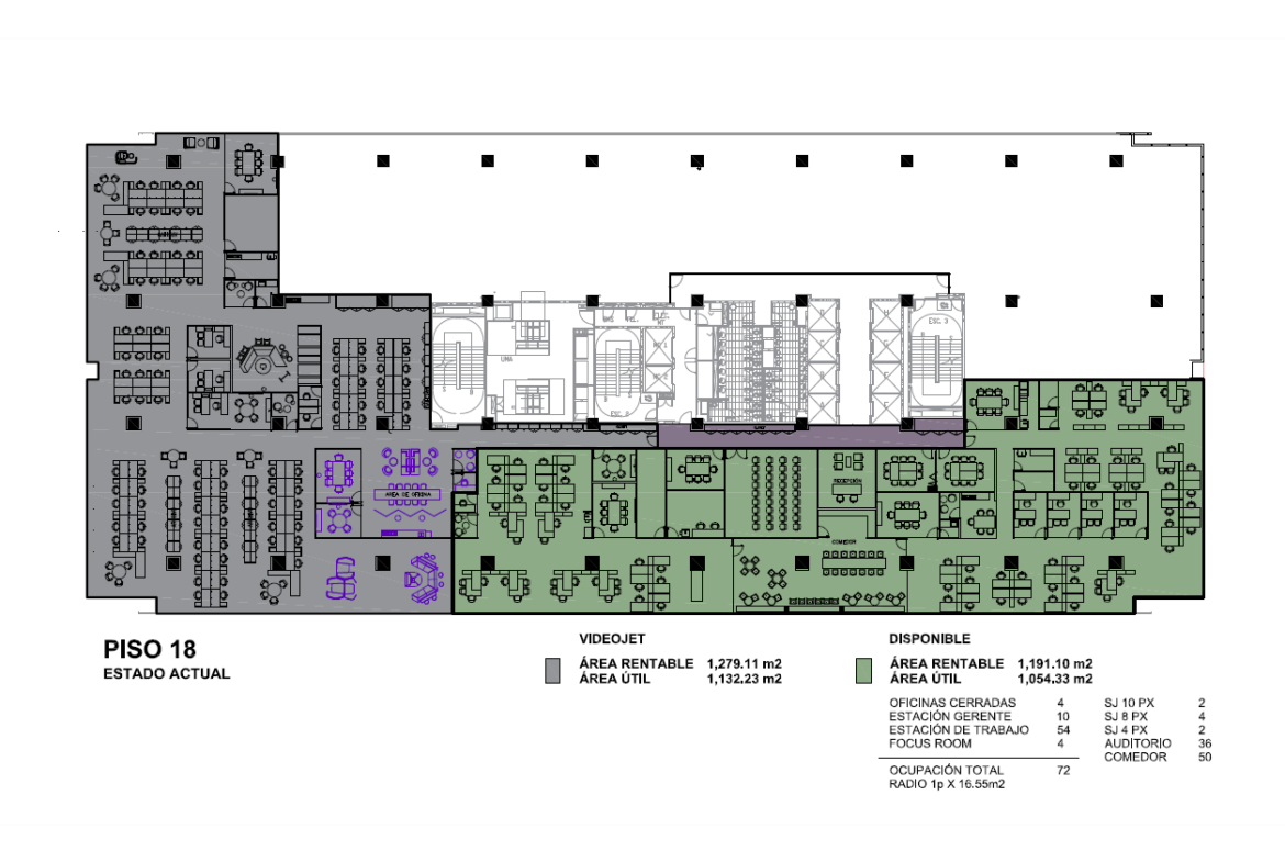 Piso 18 con 1,191 m2 – Amueblado